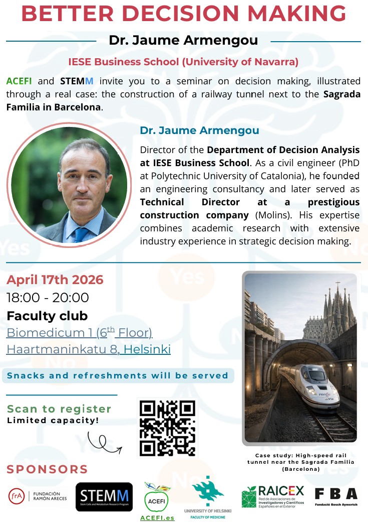 Viernes 17 de abril de 2026, en Biomedicum, Faculty Club; Haartmaninkatu 8 (Helsinki) a las 18:00